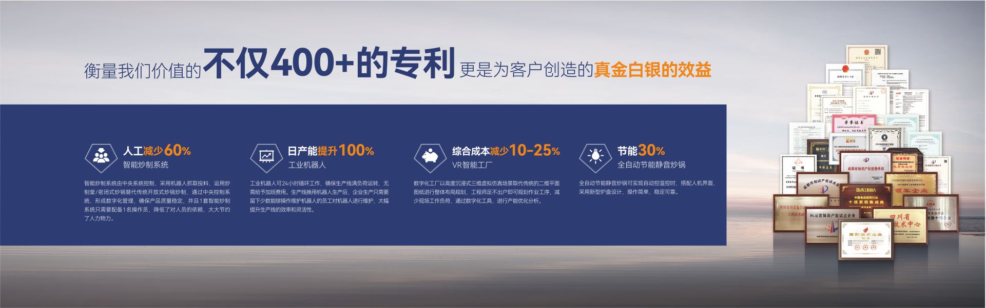 成都??茩C械設(shè)備制造有限公司(簡稱:成都??疲┦且患壹邪l(fā)、生產(chǎn)、銷售、服務(wù)為一體,專注為中國傳統(tǒng)食品行業(yè)提供自動化、智能化、數(shù)字化、智慧工廠整體解決方案的國家級高新技術(shù)企業(yè)。公司擁有標準化辦公樓及現(xiàn)代化生產(chǎn)車間約42000m2,具有較強的綜合研制、設(shè)計開發(fā)、生產(chǎn)能力,具備嚴格的質(zhì)量管理體系和完善的售后服務(wù)體系。公司業(yè)務(wù)范圍覆蓋:復(fù)合調(diào)味品智能生產(chǎn)線、中式醬鹵肉制品智能生產(chǎn)線、醬腌菜智能生產(chǎn)線、智慧餐廚、央廚預(yù)制菜調(diào)理智能生產(chǎn)線,與海底撈、天味、九毛九、聚慧、楊國福、絕味、雙匯、新希望、無窮、烏江、吉香居、仲景、李記樂寶、Tyson、益海嘉里、開小灶、老鄉(xiāng)雞等眾多知名企業(yè)合作。截止目前,成都??埔呀?jīng)助力超2000+企業(yè)順利投產(chǎn)5000余條生產(chǎn)線,為客戶創(chuàng)造年產(chǎn)值超1000億元!